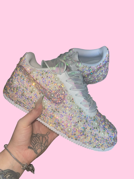 Custom Pink and Pearl Rhinestoned Nike Air Force 1